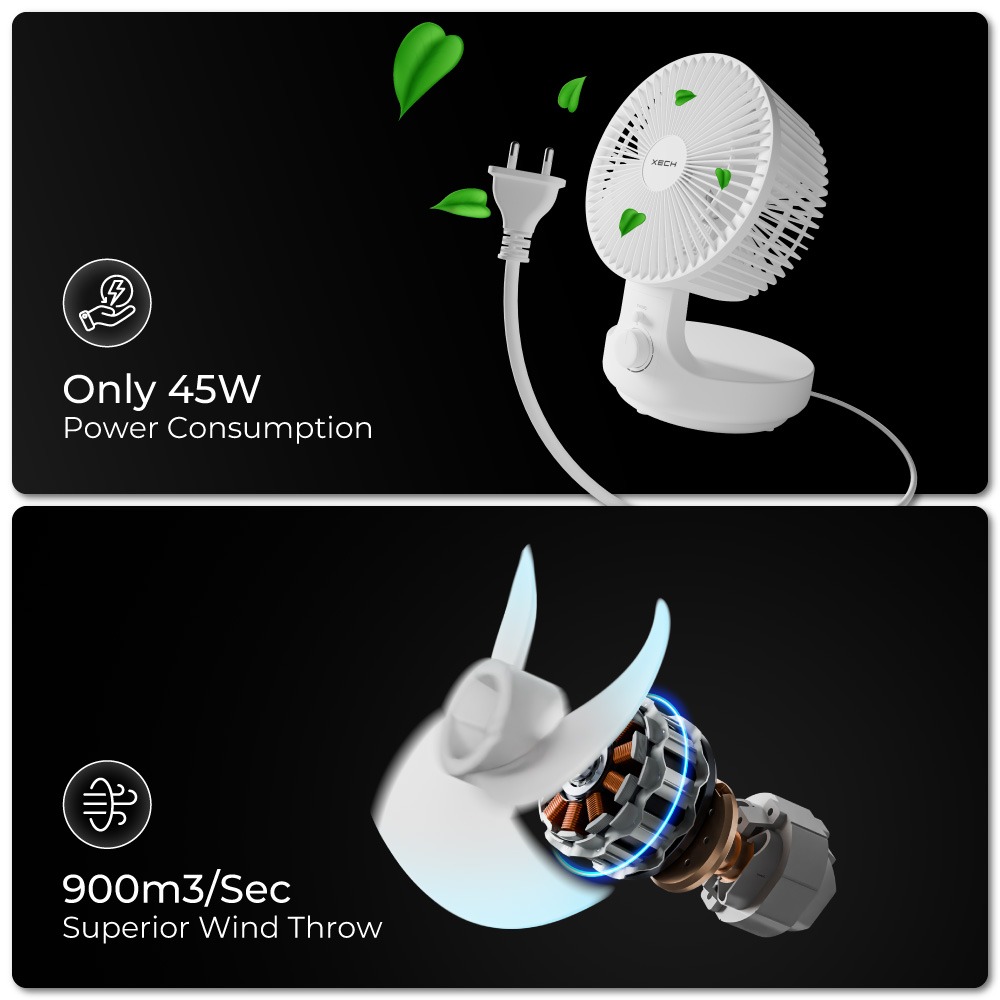 Its 120° swing ensures even wind distribution for everyone, while the energy-efficient brushless motor and aerodynamic fan blades provide a superior wind throw of 900m³/sec at 2200 RPM.