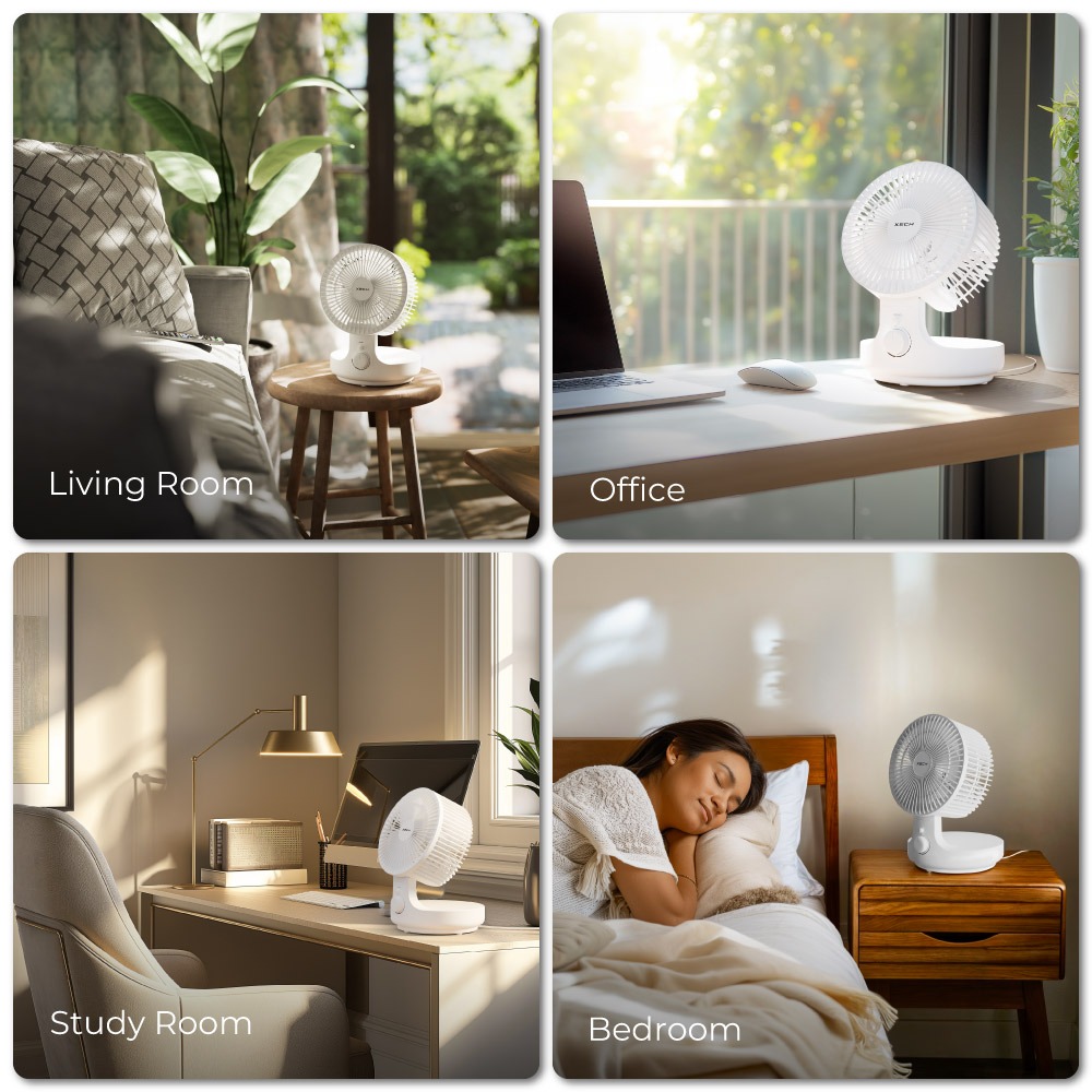Experience unparalleled comfort with the Air Wave Desk Oscillation Fan. This powerful yet noiseless fan operates at just 59dB—quieter than a conversation—making it perfect for bedrooms, offices, and study rooms.