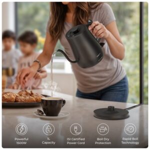 This sleek, 1500W kettle offers the best in performance and style for hot water and tea enthusiasts.