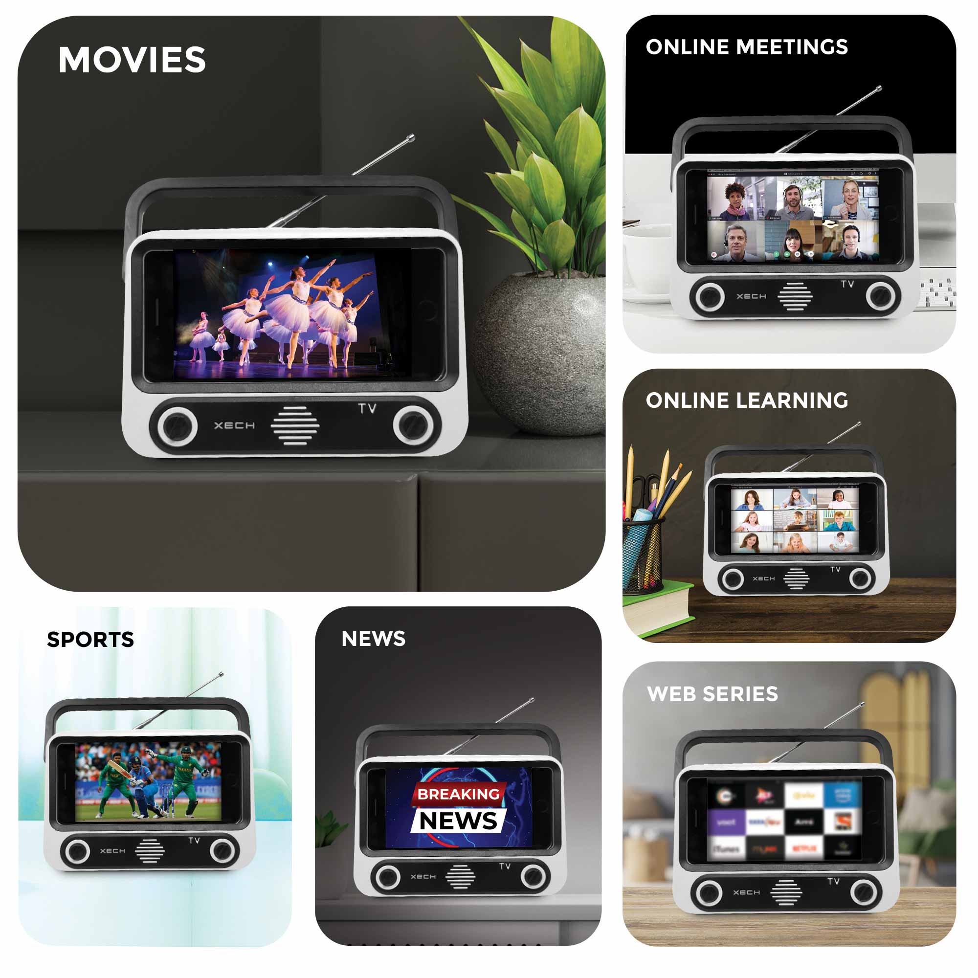 XECH Tellivibe Max is an innovative Bluetooth speaker with a smartphone holder and a retro radio design that allows you to go hands-free as you immerse yourself & enjoy your favourite shows & movies.